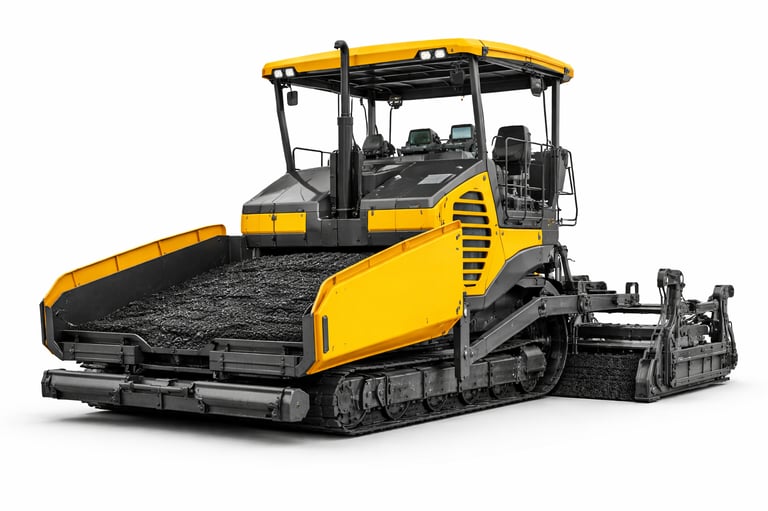 A specialized machine that spreads and levels asphalt to create smooth, durable roads efficiently.