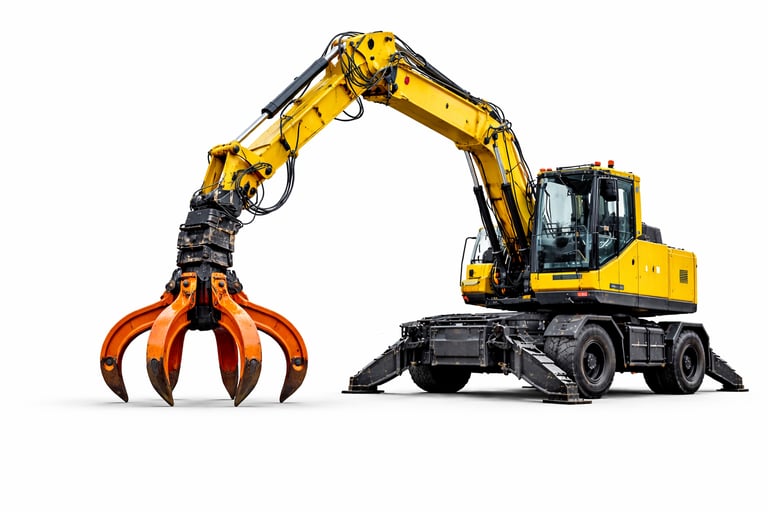 A versatile excavator equipped with a grapple arm for lifting, handling, and moving heavy materials with precision